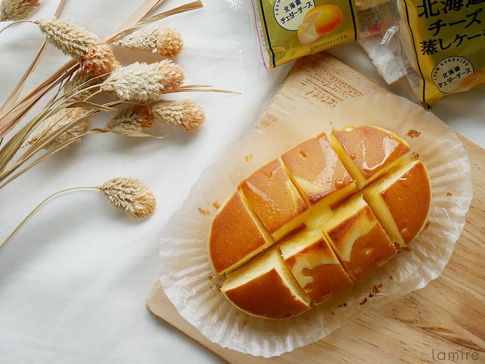 温めるとチェダーチーズの風味が強くなり、より塩気が増す気がします!蒸しパン本来のふわもちっとした食感で、パクパクいくらでも食べられちゃう。普通に食べるとちょっぴり甘いと感じる人にもおすすめですよ。