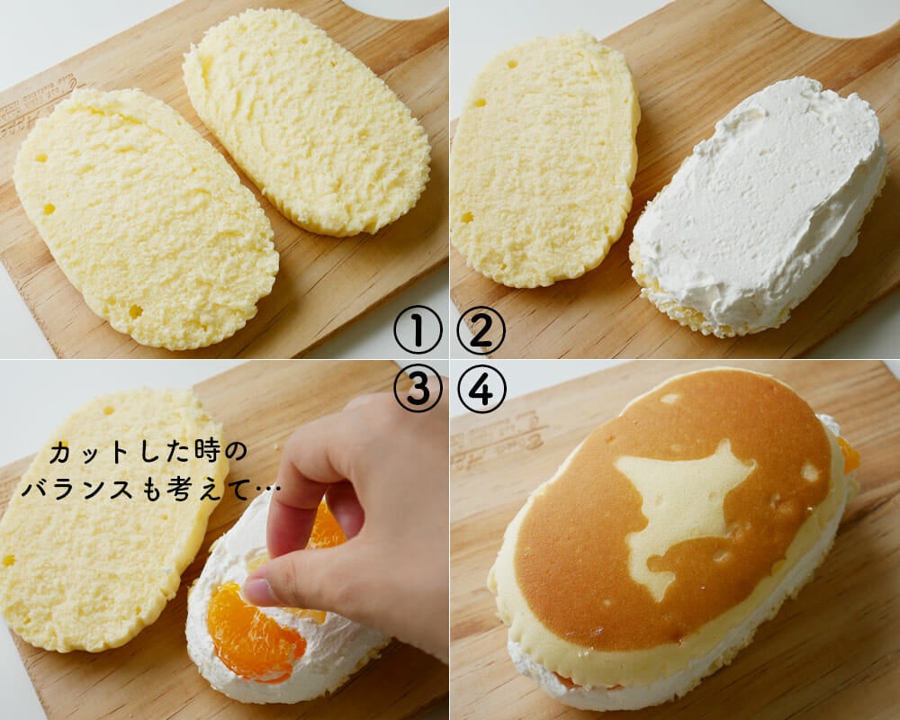 ②下部分の蒸しケーキに、ホイップクリームを塗っていく