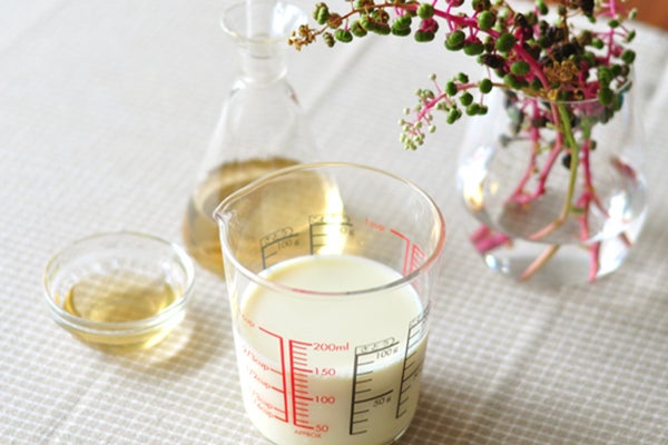 豆乳に酢とはちみつを入れてかき混ぜるだけでできますよ。酢の作用で豆乳が少しトロッとするので、ヨーグルトドリンクのような味わい。
