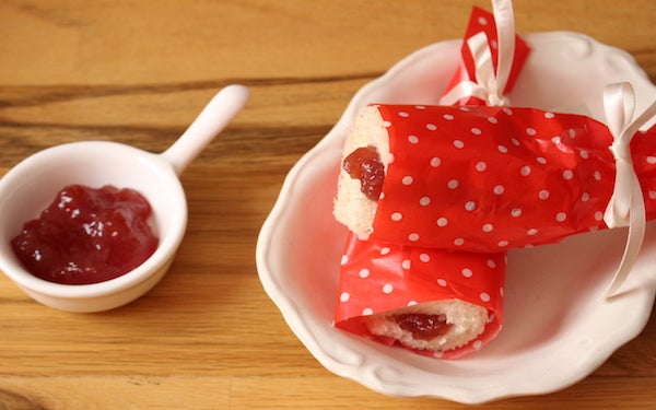 あっという間に出来上がり!具をのせすぎると巻けないので、控えめに入れてみてくださいね。ラッピングペーパーやリボンをあしらっているから、プレゼントにも最適。子どもだけでなく大人にも、きっと喜ばれることと思います。