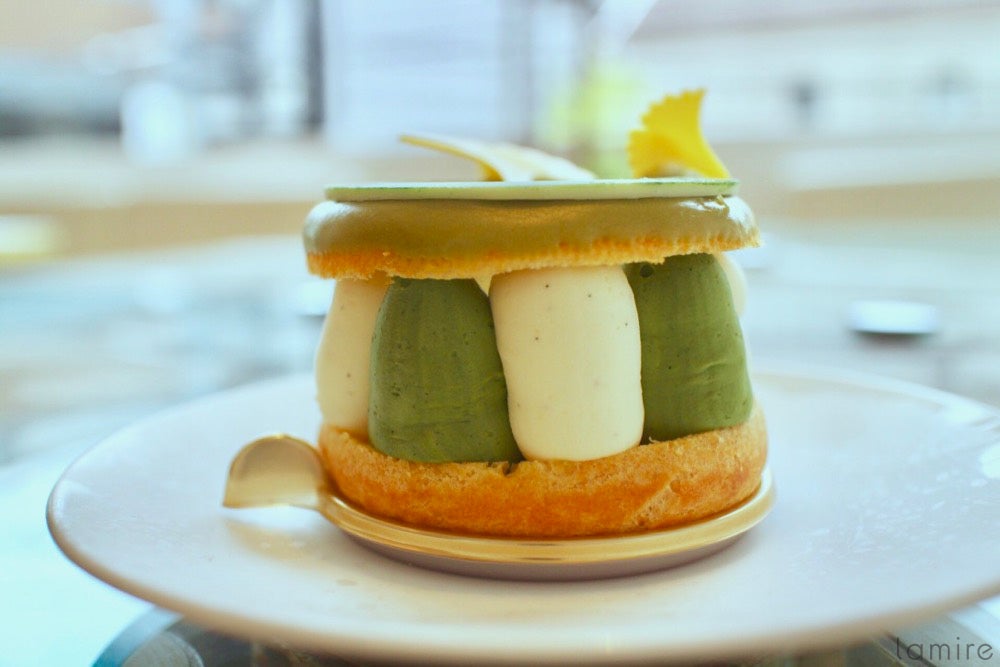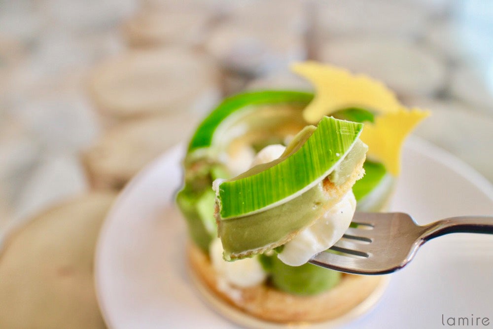 抹茶ガナッシュとバニラガナッシュがたっぷり挟まっていて、食べ進めていくと、パッションフルーツのジャムの風味が爽やかさをプラスしてくれます。日本を代表するケーキ、パリストーキョー、ぜひ試してほしいです!