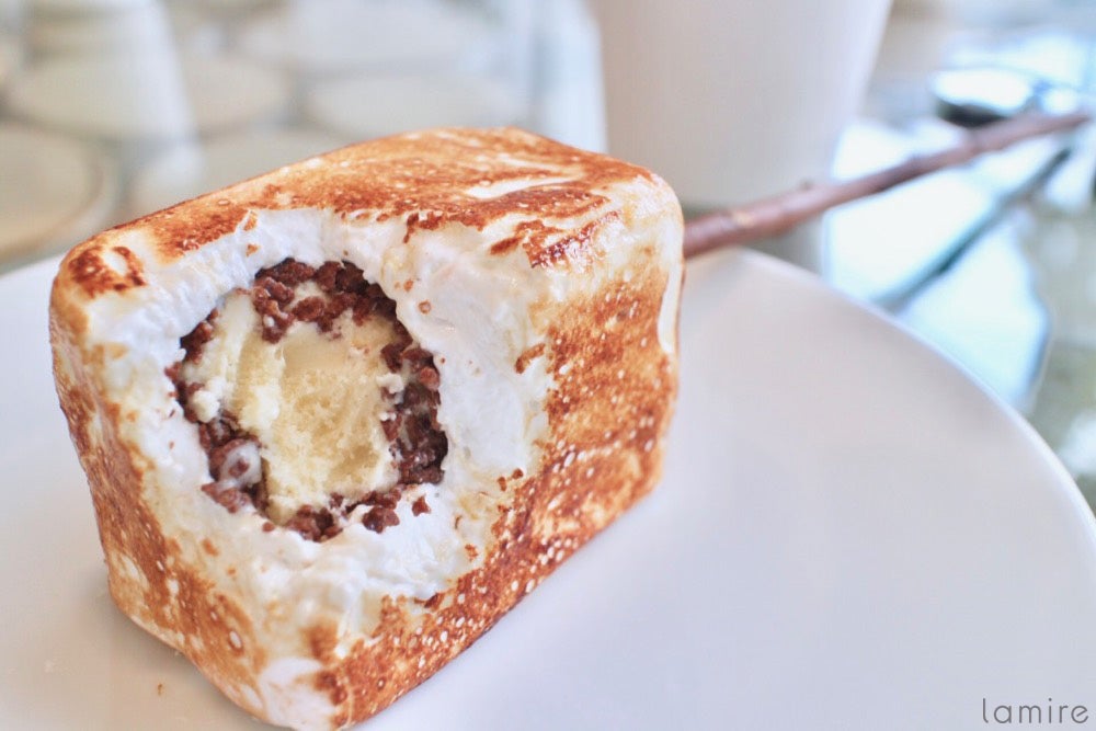 熱々のマシュマロをひと口かじると、バニラアイスとチョコクランチの登場!夏にも冬にも食べたくなる究極のスイーツですね。また、こちらのお店ではマシュマロからアイスまですべてが手作り。特にフローズンスモアのマシュマロはハチミツ風味の優しい甘さでもっちりしているのも特徴です。