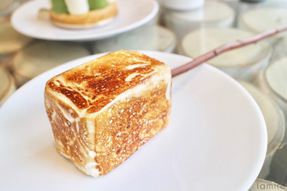 ドミニクアンセルベーカリーと言えば、クロナッツやドミニクのクイニーアマン(DKA)、クッキーショット™など、有名なスイーツがたくさんありますよね。そして、中でもインスタグラムでよく見かけるのがフローズンスモア™!木の枝に刺さったマシュマロはバーナーでこんがりと焼き色をつけてくれるのですが、なんとも食欲そそります。