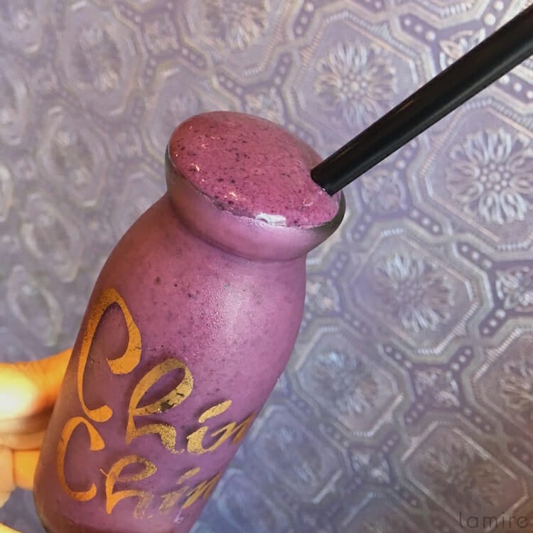 豆乳が濃いは濃いのですが、ドロドロしている感じではなく、なめらかで飲みやすいのが特徴。使われている材料は、豆乳、ラズベリー、ストロベリー、ブルーベリー、とベリーづくしの一品です。ベリーのつぶつぶの食感も楽しい!