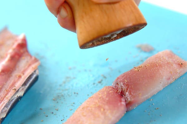 ・サワラはサッと水洗いして水気を拭き取り、骨があったら抜き、両面に塩コショウを振る。