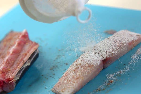 1、サワラ全体に小麦粉を薄くつける。