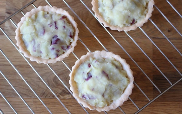 かぼちゃのフィリングをさつまいもに変えても同じように作れます。さつまいもの方がホクホク感が大きいので、フィリングのメープルシロップの量を少し足してみてくださいね。タルト型は小さいものを使うと、タルトのサクサク感が増して、またひと味違うおいしさを堪能できますよ。