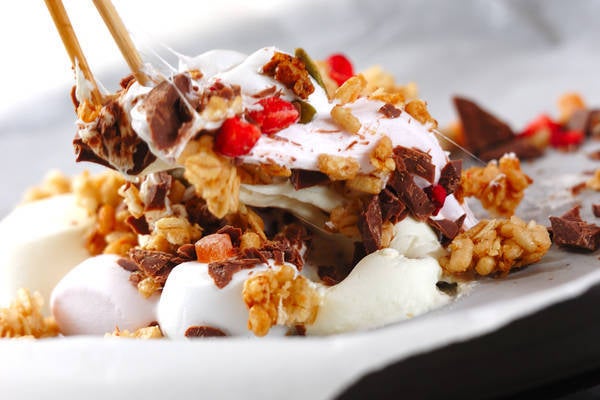 マシュマロ、シリアル、チョコレートの3つの材料だけで作れるスイーツは、マシュマロのもっちりとした食感が楽しめます。