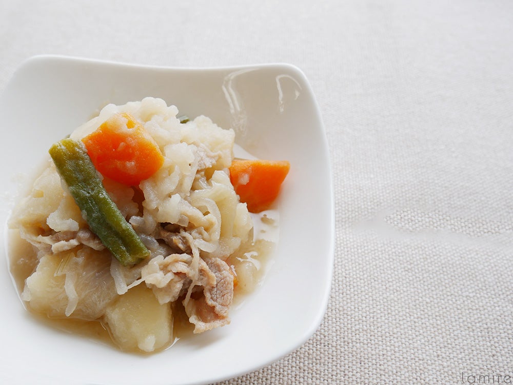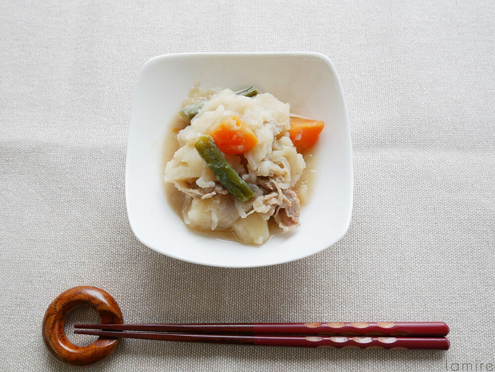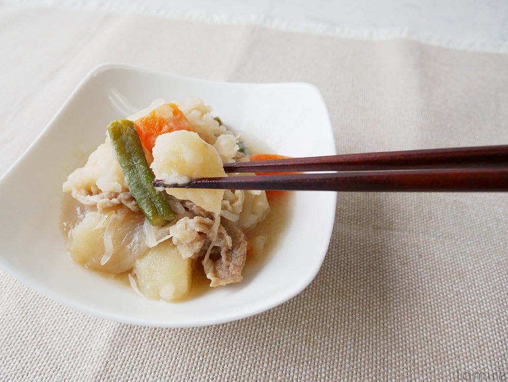 冷凍食品のラインナップを見て、一番最初に食べてみたいと思ったのが「肉じゃが」でした。肉じゃがを一人分だけ作るのって大変…でもたまに食べたくなるあの味。沸騰したお湯に入れて約10分ほどで、しっかり味の染み込んだ肉じゃがにありつけるなんて♡