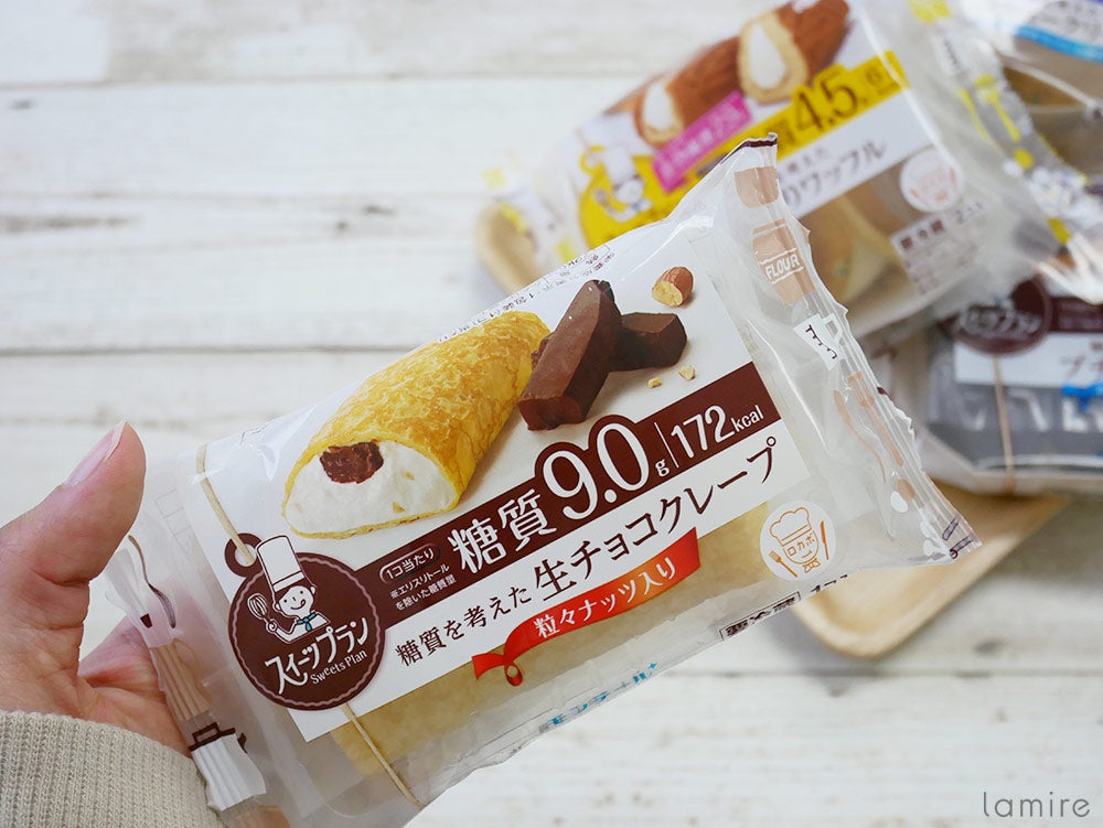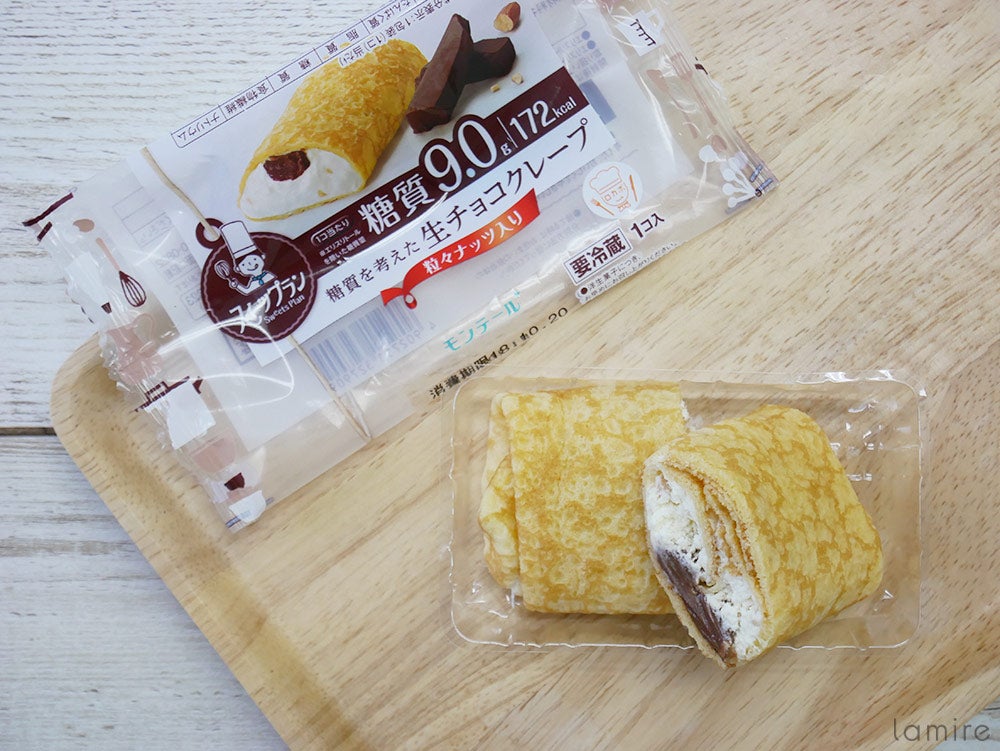 最後に紹介するのは、「糖質を考えた生チョコクレープ」。こちらは1個入りで糖質は9.0g、カロリーは172kcalです!