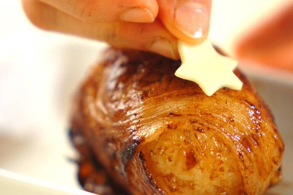 2、星型にくり抜いたスライスチーズをのせる。