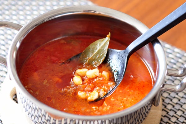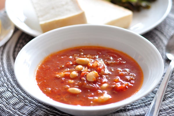 豆と肉でたんぱく質が、トマトで野菜も同時にとれる一品です。これにパンでもあれば、せわしない朝でも栄養バランスはばっちり! 朝食におすすめのスープです。