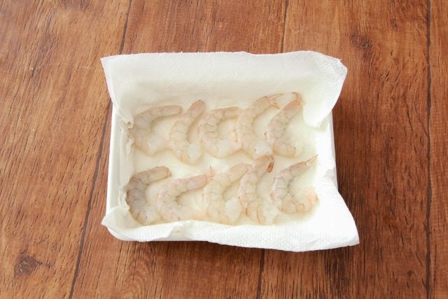 水気を拭き取ったら、あとはいつも通りに調理してOK!このひと手間を加えるだけで、エビがプリップリでジューシーに仕上がる。