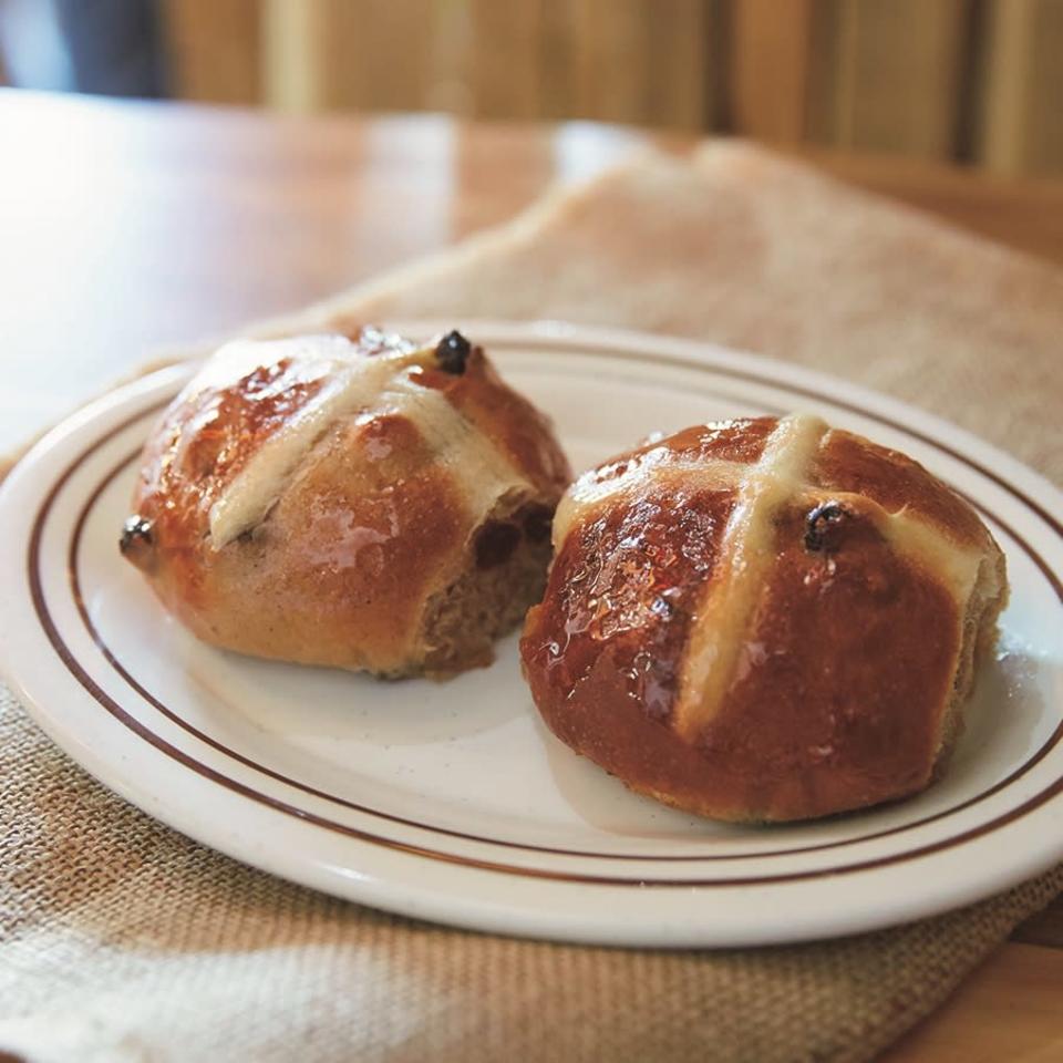イースターの伝統食として親しまれる、十字架をアイシングで表現した見た目が特徴的なパン。ふかふかで、ドライフルーツがたっぷり入っています。