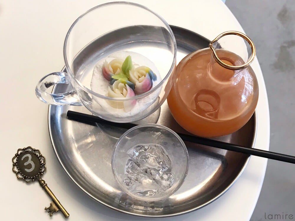 カラフルな小さいお花はなんと!あんこでできているんだそう。そこにミルクティーを注いで、お好みで氷を入れて、よく混ぜて飲んでくださいね。あんこのほのかな甘みが、ミルクティーによく合っておいしい!名前の「so long」はお花のあんこが溶けて無くなる様子を表現しているんだとか。名前にもセンスが光ります。