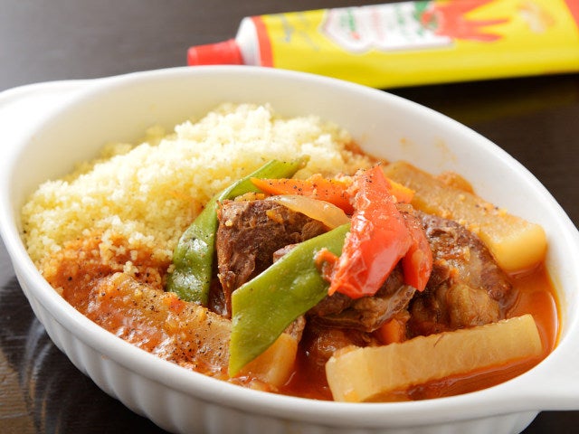 最後は「クスクスと仔羊の煮込み」(写真上)。トマトやブイヨンから出るうまみを活かして、水を使わずに2時間煮込んだ仔羊は、スプーンでスッと切れる柔らかさ。大根やニンジンなど季節の野菜にも味が染みていて、野菜の持ち味を十分に楽しむことができる。そのまま食べてももちろんおいしいが、添えられるチュニジア産唐辛子をたっぷりと絡めて、辛みを加えて食べてもまた美味だ。