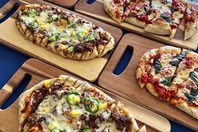 フラットブレッドピザはマルゲリータ、カルアポーク、カウアイシュリンプの3種類がありますが、私のイチオシはカルアポーク。スモーキーでピリ辛でチーズがトロトロでウマイー!