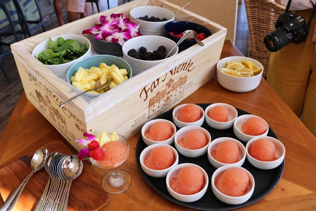 フードメニューもワインやカクテルに合うものがたくさんありました。こちらはハワイ近海で獲れたマグロを生姜醤油とスリラッチャソースで和えたスパイシーアヒポケ。