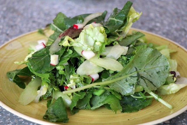 地元の農園から仕入れたフレッシュベジタブルを使ったサラダは野菜のおいしさを実感できる一品。ハウスメイドの昆布ビネグレットがとってもおいしかった!