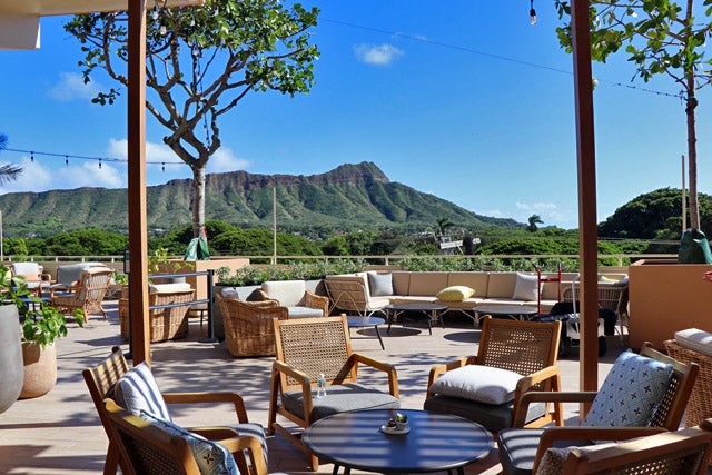 室内席の周りにはオープンエアのシーティングエリアが広がり、なんともいい雰囲気。ハワイに来たらこんな所で食事をしたいという理想が形になったようなレストランなんです。