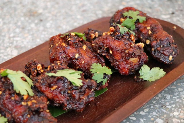 アジアンテイストのチキンウィングはスパイスが効いた大人の味。これはビールが飲みたくなるなぁ。