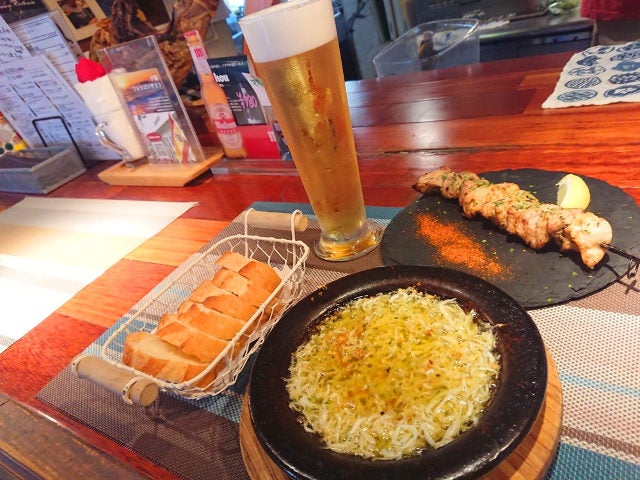 とくに料理なら魚系、海のだしが効いたパエリアを始めとする米料理は、海のそばだからより気分が上がる。