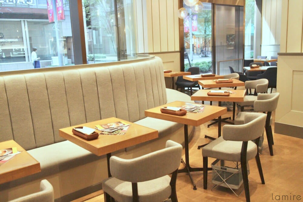 席と席との間もゆったり取られているのも嬉しいですよね。東京ミッドタウン日比谷がオープンしたこともあり、このエリアは今や人が集まるホットスポット。そんな注目のスポットへ出かけたとき、ランチやお茶をするカフェを探すのって意外と大変ですよね。人混みを抜けて訪れたい、そんなお店です。