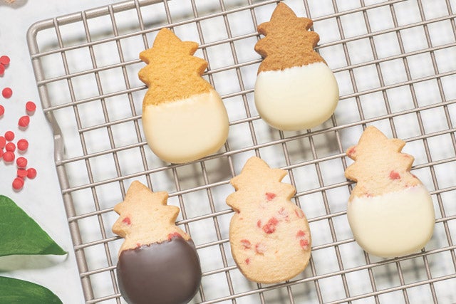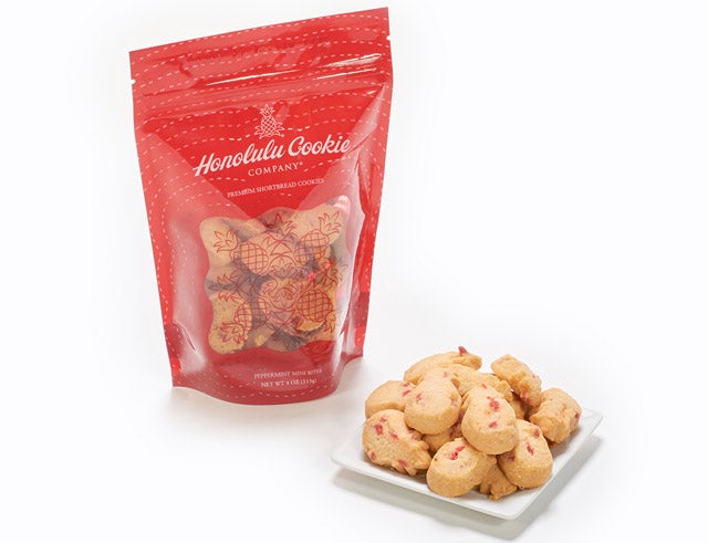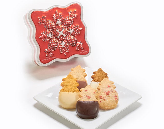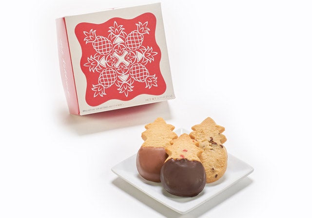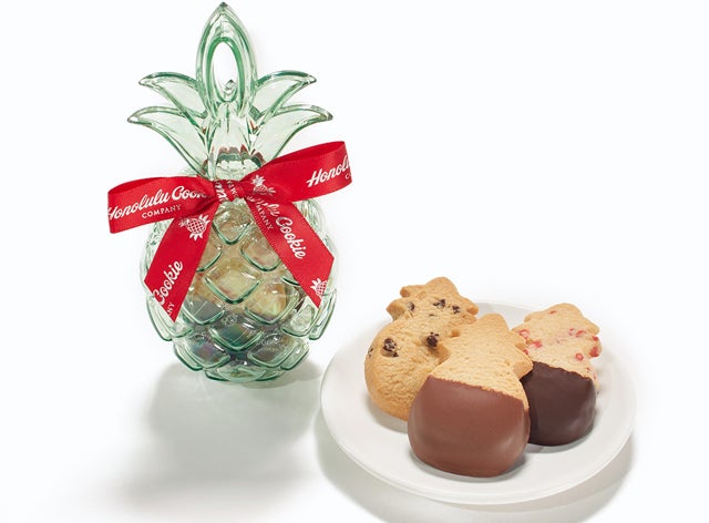 ホノルル・クッキー・カンパニーのホリデーコレクションといえばこれ。「メレパイナップルオーナメント」はダークチョコレートペパーミントを含むクッキー6枚入り。ばら撒きみやげにもぴったりです。