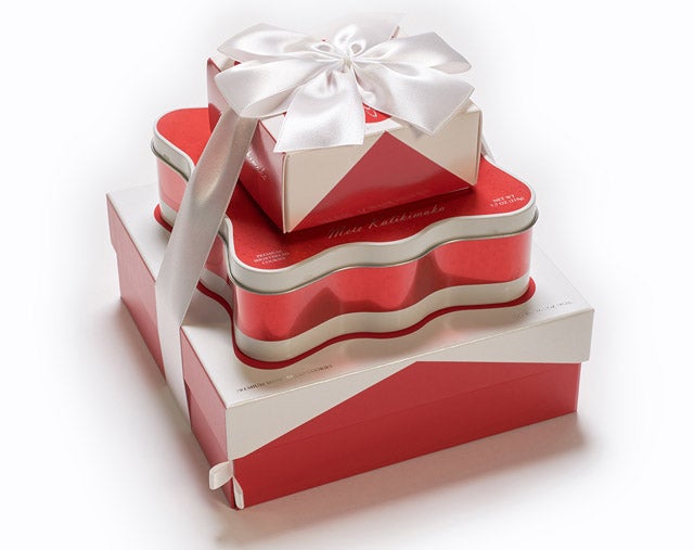 3種類のホリデーコレクションボックスをリボンで結んだ「メレギフトタワー」は豪華のひとこと。もちろん全種類のホリデーフレーバー入りです。