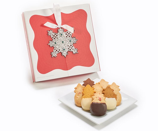 美しいオーナメントとクッキー、2つのプレゼントを貰った気分になる「メレキープセイクボックス」は4種類のホリデーフレーバークッキーが入っています。