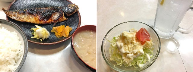 定食屋さんだから、ハンバーグやカレーライス、ロース生姜焼などの定食も豊富。サバやサンマなどの焼魚も、皿をはみ出すボリュームで提供される。