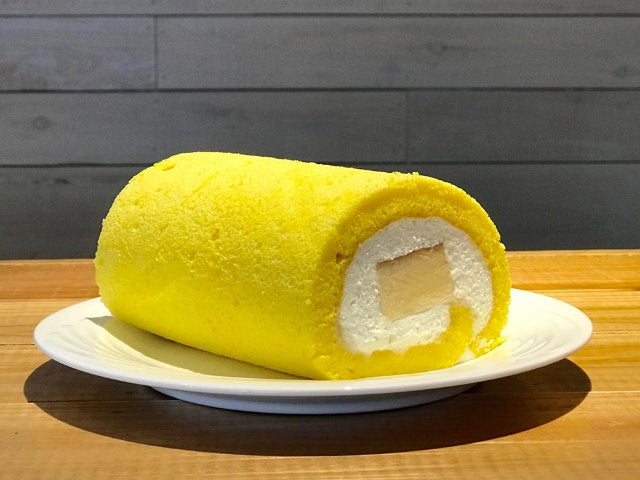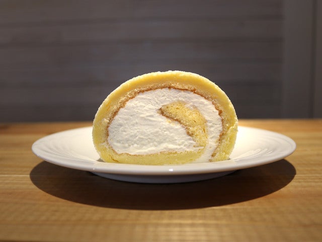 黄色の生地がパッと目を引く「プリンロール」(写真上)。芳醇な卵の味わいが感じられ、滑らかな舌触りのプリンがふんわりとした生地に包まれて、濃厚さをプラスしている。こどもからお年寄りまで愛される、優しく懐かしい味わい。