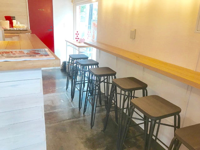カウンターには6席のイートインスペースがあり、ロールケーキ以外にも『パッション ドゥ ローズ』のパンを使用したサンドイッチやソフトクリームを楽しむことができる。それぞれドリンクとのセットメニューもあり、ロールケーキを一切れだけ食べたい人にもオススメだ。
