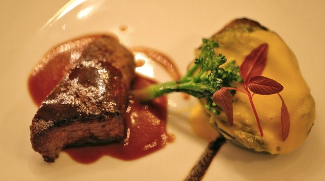 高知の淡麗辛口とフレンチのメインとしっかり絡み合う濃密さのバランスがいい。この日の料理は牛ヒレと米茄子を蕗味噌のペーストでまとめた、かなり濃厚な料理(写真上)だったが、深みがありながらもみずみずしさを残した米茄子と「DAITO」の隠れたキラキラした表情とよくあっていた。一瞬、重いかなと感じたが、あとからその爽やかでキラキラした明るい酸が追いかけ、余韻で交じり合ったときに、思わず笑顔になってしまった。
