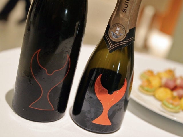 まず、「酔鯨」初のスパークリング コンセプトモデル「Drunken Whale Spark-RED」(写真上・右)。赤い鯨のしっぽがアイコン。洋食とのマリアージュを楽しめるスパークリングを目指したが、その工夫の結果は意外なもので、高知産のトマトを加え酸味をもたらすという。