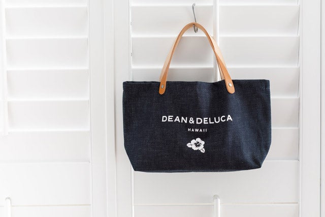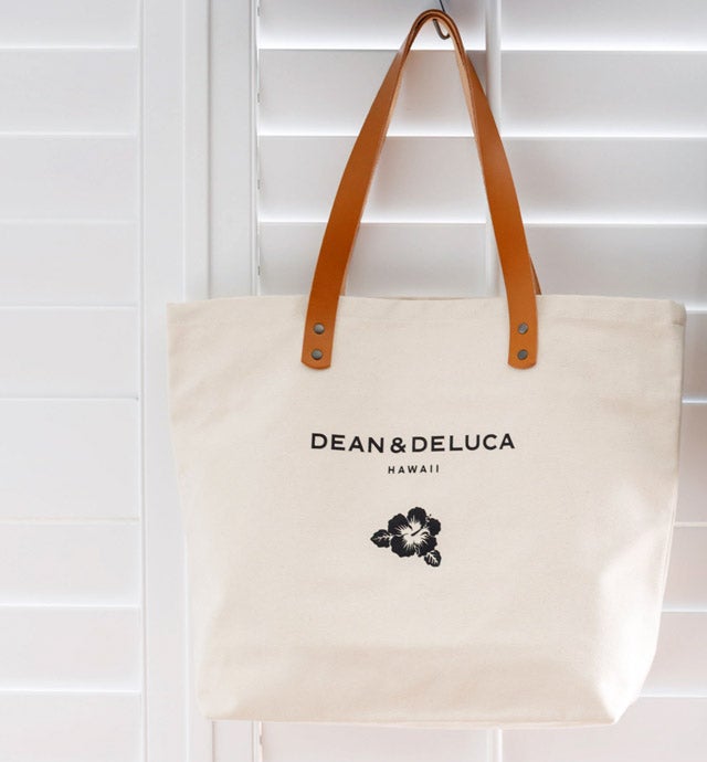 「DEAN & DELUCA HAWAII」のロゴと小さなハイビスカスがプリントされたバッグはユニセックスかつエイジレス。どんな季節にも愛用できるシンプルなデザインとなっています。