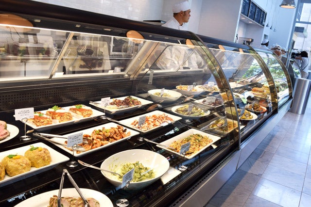そのほか、グルメサラダ、ラザニア、ローストビーフなどをそろえたデリやベーカリー、カフェも人気。2階にはイートインスペースもあり、購入したフードやワインをその場でいただくこともできるんですよ。