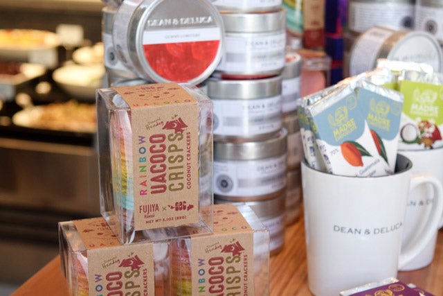 レインボーカラーのココナッツクラッカーはお茶の葉と一緒に。ハワイの”楽しい”とDEAN & DELUCAの”クラッシー”を組み合わせて、素敵なおみやげパックを作ってください。