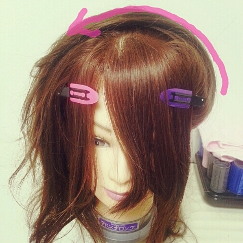 ブロッキングしたサイドの髪の毛を