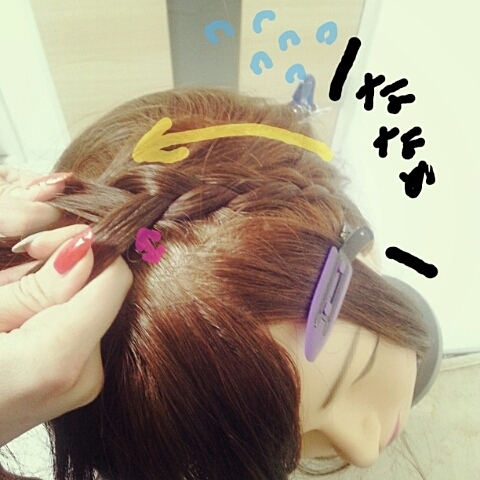 頭を傾けながら編み込みは