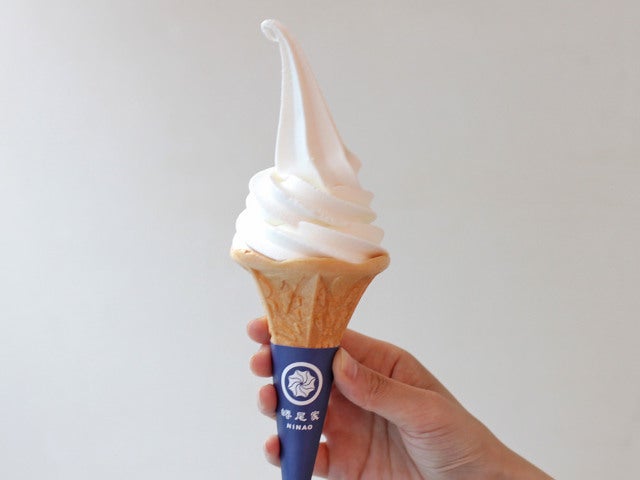 店名の“蜷(ニナ)”は台湾語で”猫”や“うずを巻く形状”という意味で、“尾”はしっぽ。同店のソフトクリームの特徴である、先が伸びてクルッと巻いた形が、猫がしっぽを巻いているかのように見えることから『蜷尾家』と名付けた。