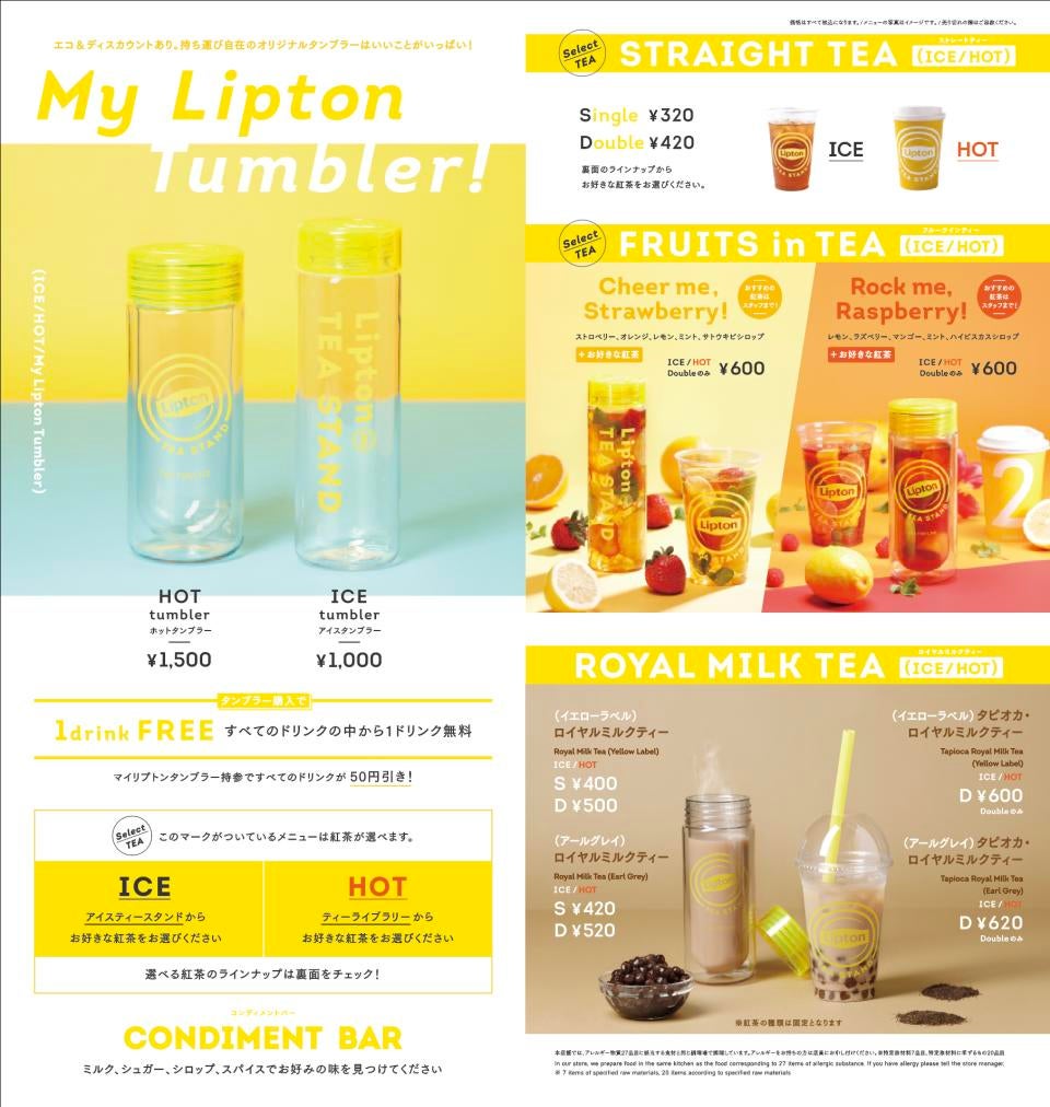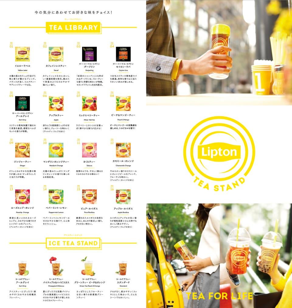 「Lipton Tea Stand」では、季節ごとに変わる 20種類以上の茶葉から、その日の気分・好みに合わせた紅茶を自由に選べる、「Tea Library 」を各店舗に準備。