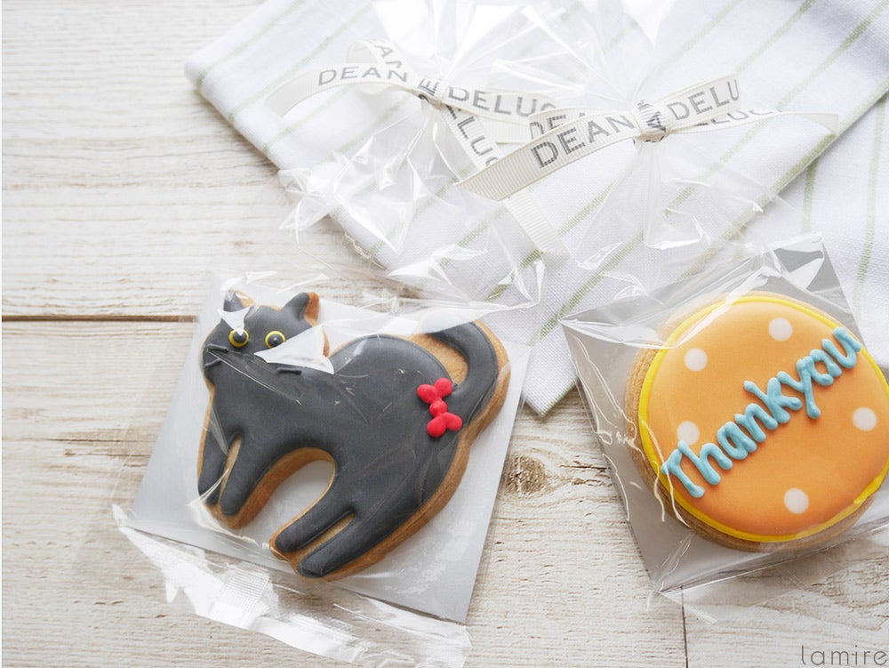左:デコクッキー クロネコフェイス 453円 右:デコラティブクッキー サンキューメッセージ 432円