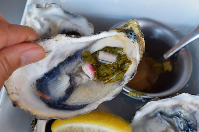 ジューシーかつクリーミーで口の中でとろける牡蠣はそのままでも唸るほど美味。ちょっぴりスパイシーなソースをつけて味の変化を楽しむのもいいですよ。