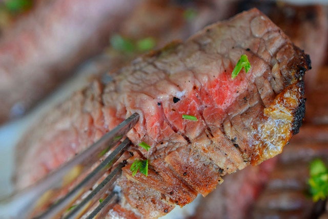 表面は焦げ目を入れて香ばしく、真ん中はミディアムレアに調理されたお肉にバターをつけていただきます!弾力のある食感に塩コショウがしっかり効いた大満足のステーキでした。