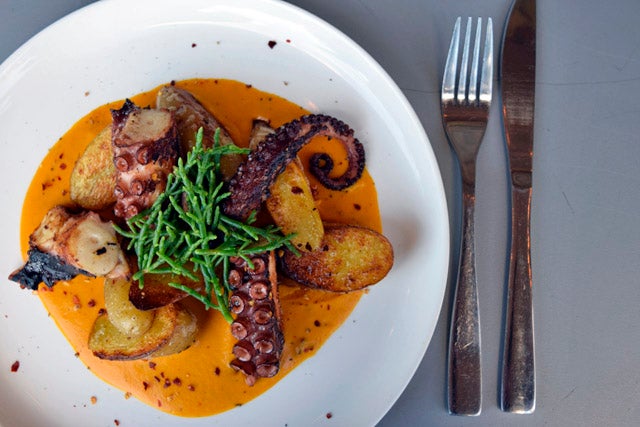評判の新メニュー「オクトパスガーデン」はタコの足をそのままの形でグリルしたボールドな一品。