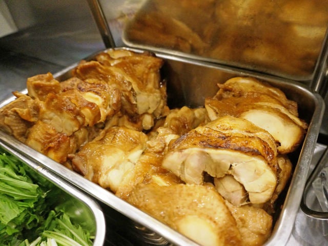 スープの表面にかすかに浮かんでいる脂分は、鶏のうまみが凝縮された「鶏油(ちーゆ)」である。
