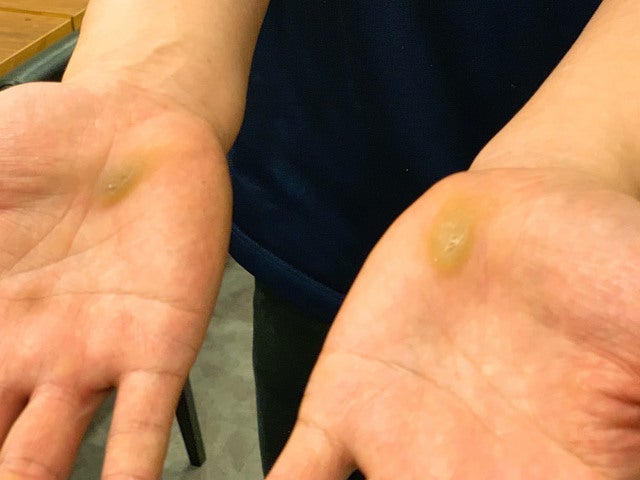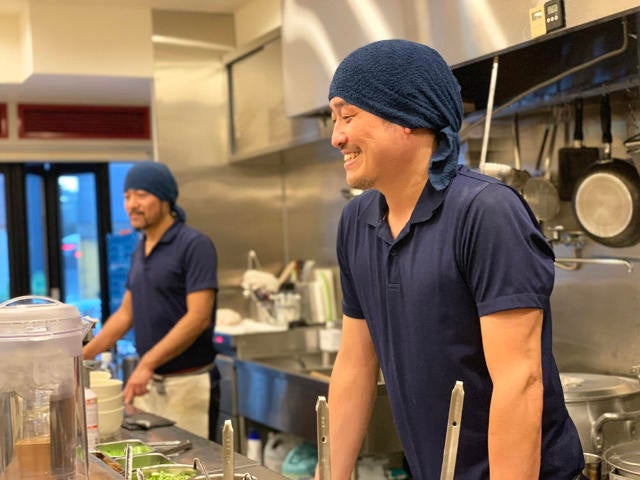 手のひらの大きなマメは、自家製白湯スープ作りにかける気迫の表れ!