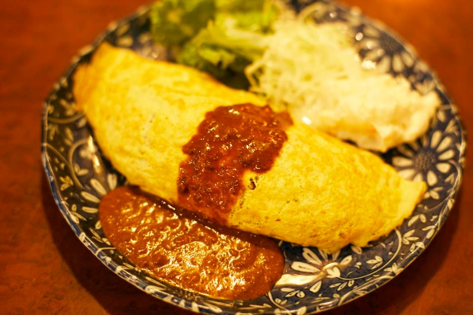 ドライカレーを卵で包み、その上から更にカレーがかかっているどこか懐かしい味。マスターだけが知る秘伝のスパイスの香りが広がります。