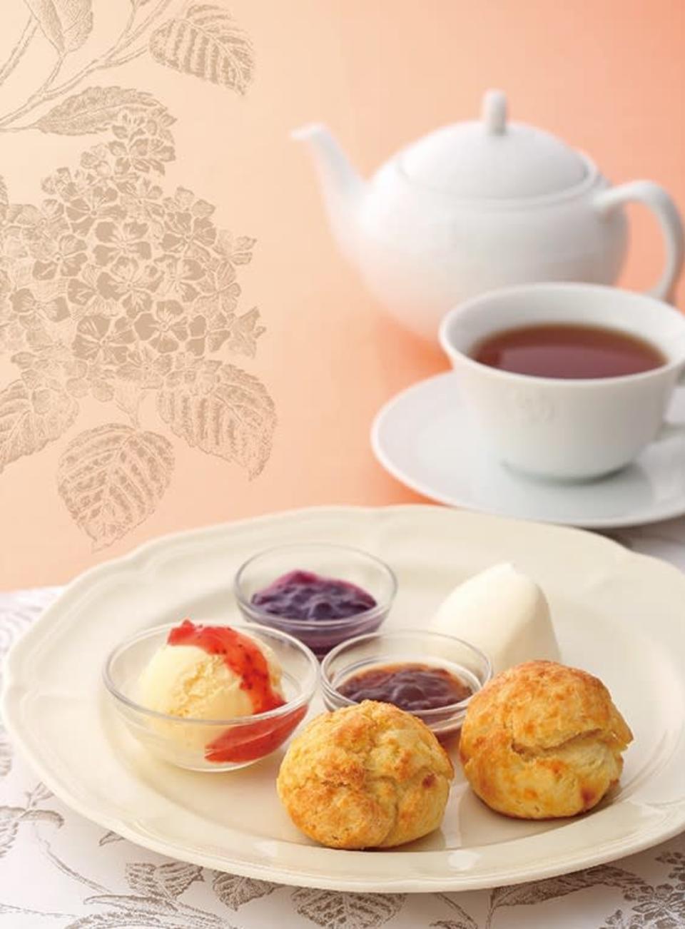 アフターヌーンティー自慢の紅茶に合うスコーンを、ブルーベリージャム、苺のティージャム、バニラアイスとともに味わえる贅沢なセットです♡